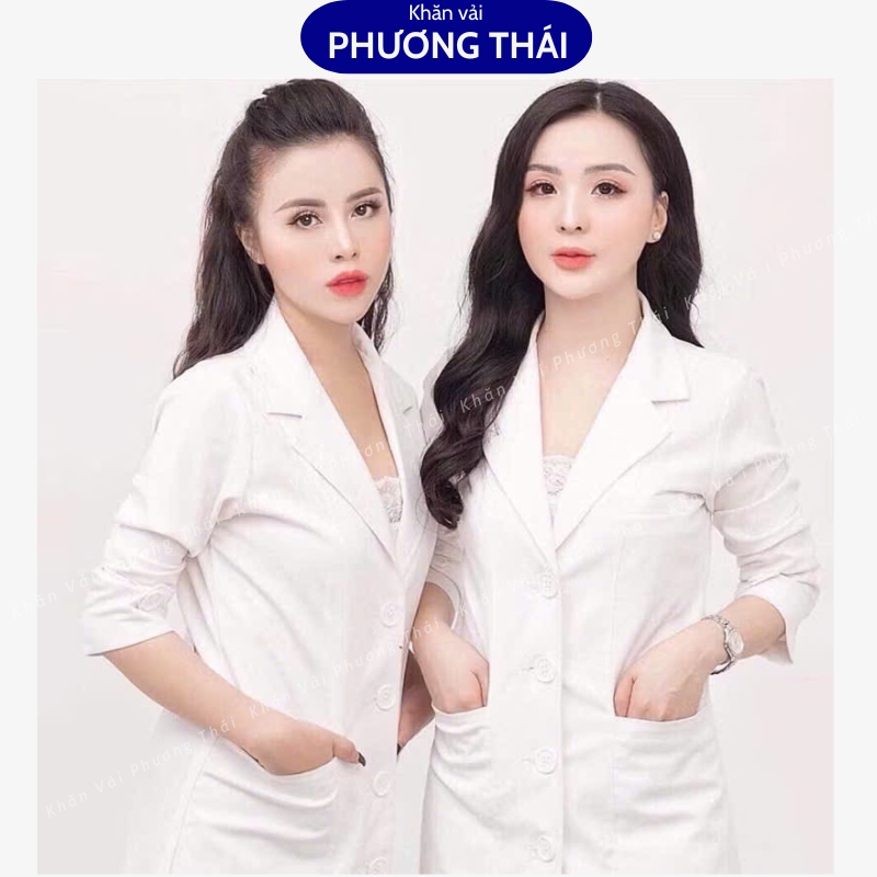 Áo blu trắng, áo bác sĩ cao cấp vải cotton lạnh, dày dặn, form đẹp cho bác sĩ, kỹ thuật viên, spa